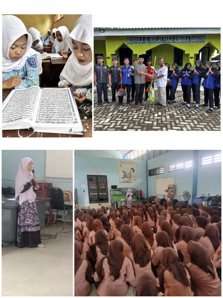 Sholat berjamaah, tadarus, bakti sosial di lingkungan sekitar sekolah dan berbagai kegiatan lainnya.