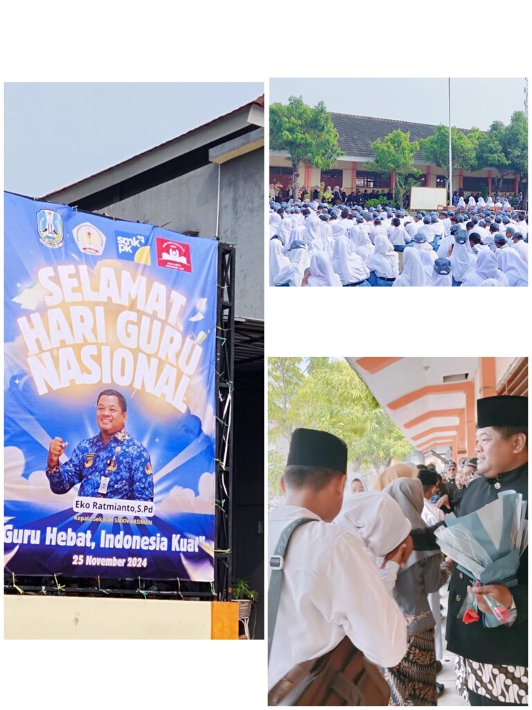 Kasiman-Hari guru Nasional yang jatuh pada hari Senin tanggal 25 November 2024 ini merupakan hari guru Nasional ke-79 tahun. Di SMK Negeri Kasiman yang memiliki siswa yang luar biasa banyaknya, memperingati hari guru dengan tertib. Hal itu terlihat dari peserta upacara bendera yang tampak rapi dan ikuti jalannya upacara sampai selesai.