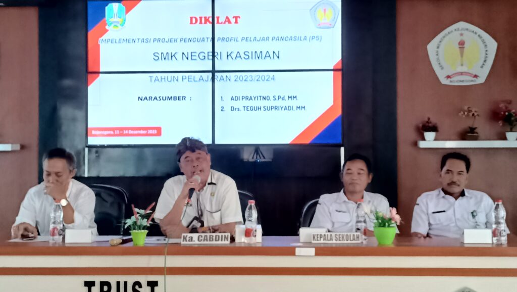Selain itu, dari Kasi SMK Cabang Dinas Pendidikan Wilayah Bojonegoro-Tuban, Bapak Drs.Agung Prijono,M.M. memberikan workshop kepada guru tentang Implementasi Projek Penguatan Profil Pelajar Pancasila (P5).”Lakukan analisis kebutuhan untuk memahami secara mendalam bagaimana penguatan profil pelajar Pancasila P5 dapat diimplementasikan sesuai dengan karakteristik SMKN Kasiman.,” jelasnya.