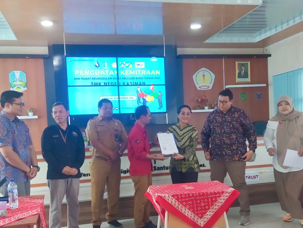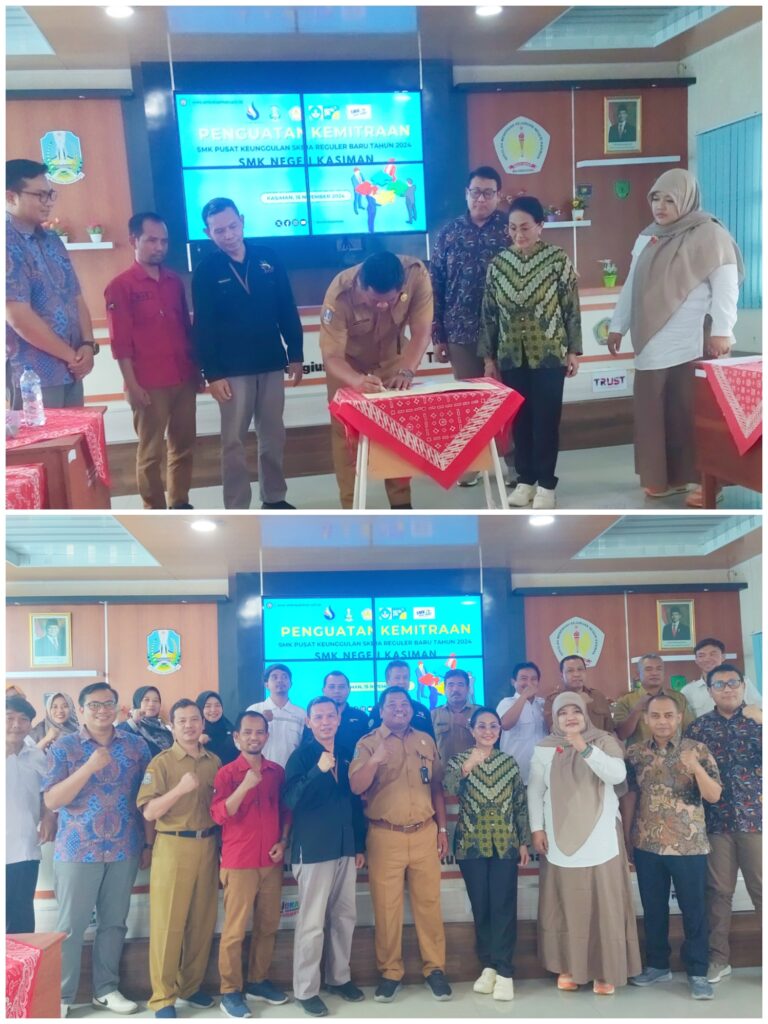 Kasiman- Bila kerja keras untuk kemajuan SMKN Kasiman di masa depan, berbagai usaha akan dilakukan. Semua itu untuk memfasilitasi dan tingkatkan perhatian sekolah kepada siswa agar lulusan SMK Negeri Kasiman mendapatkan prioritas utama dalam dunia kerja. Hari Rabu (19/11/2024) kemarin, perwakilan dari ITB-STIKOM Bali mengunjungi SMK Negeri Kasiman dalam rangka penguatan kemitraan SMK Pusat Keunggulan Skema Reguler Baru tahun 2024 SMKN Kasiman. Penandatangan MoU pun dilakukan untuk tingkatkan pendampingan SMK-PK (SMK Pusat Keunggulan). Bapak Eko Ratmianto,S.Pd. selaku kepala sekolah SMKN Kasiman menandatangani kesepakatan kerjasama untuk pendampingan peningkatan mutu SMK-PK.