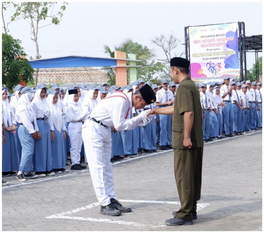 Upacara peringatan Hari Guru Nasional (HGN) di SMK Negeri Kasiman tahun 2023 ini semoga menambah rasa hormat kepada guru. Demikian juga dengan potensi guru, semakin membawa perubahan dan bergerak cepat untuk kemajuan SMK Negeri Kasiman yang kita cintai ini.(@trie)